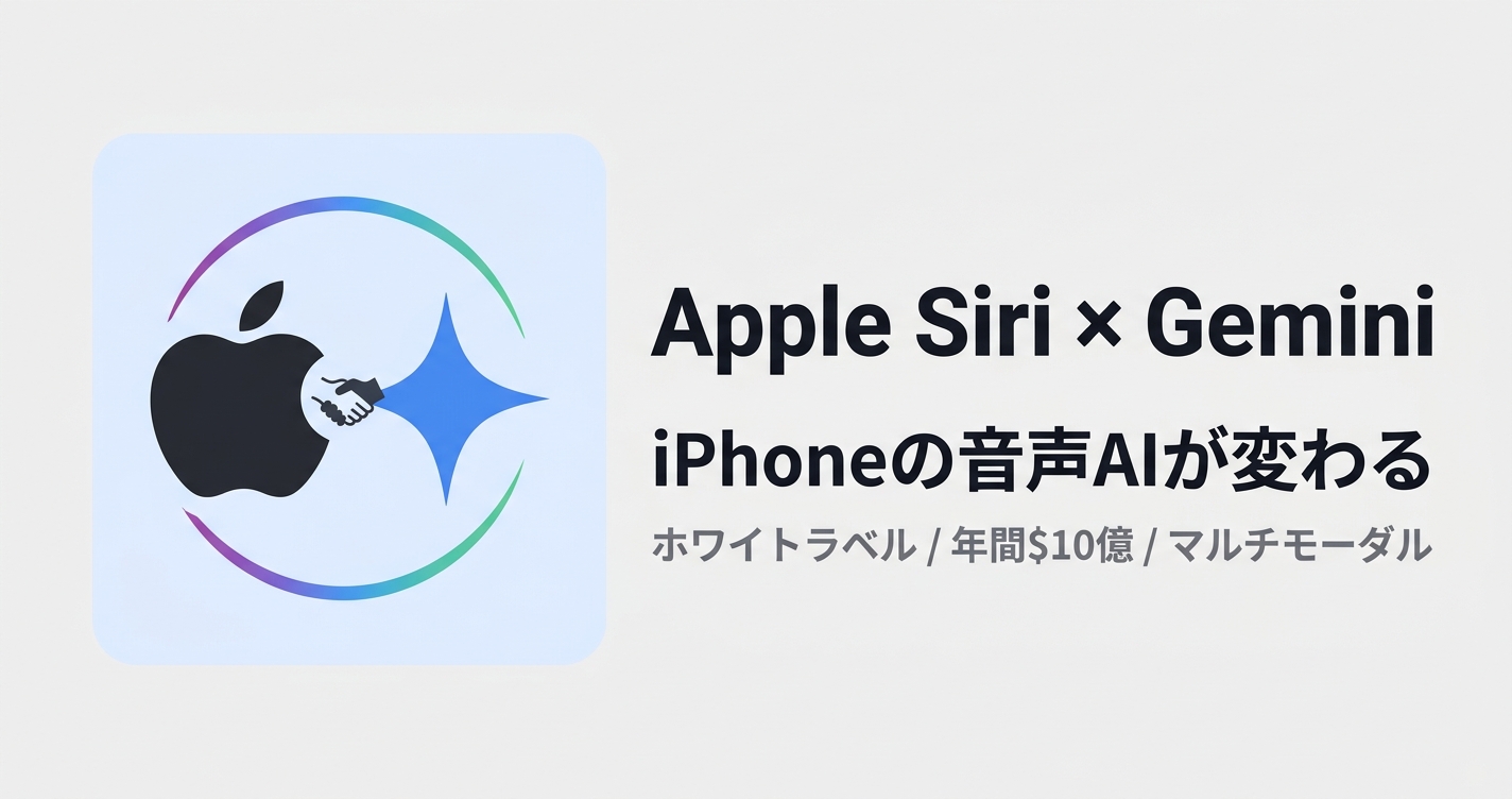 AppleがGoogleと年間約10億ドルの契約を結び、Geminiベースの新Siriを発表。ホワイトラベル方式の採用、対応機種、マルチモーダル対応など、その全貌を解説する。