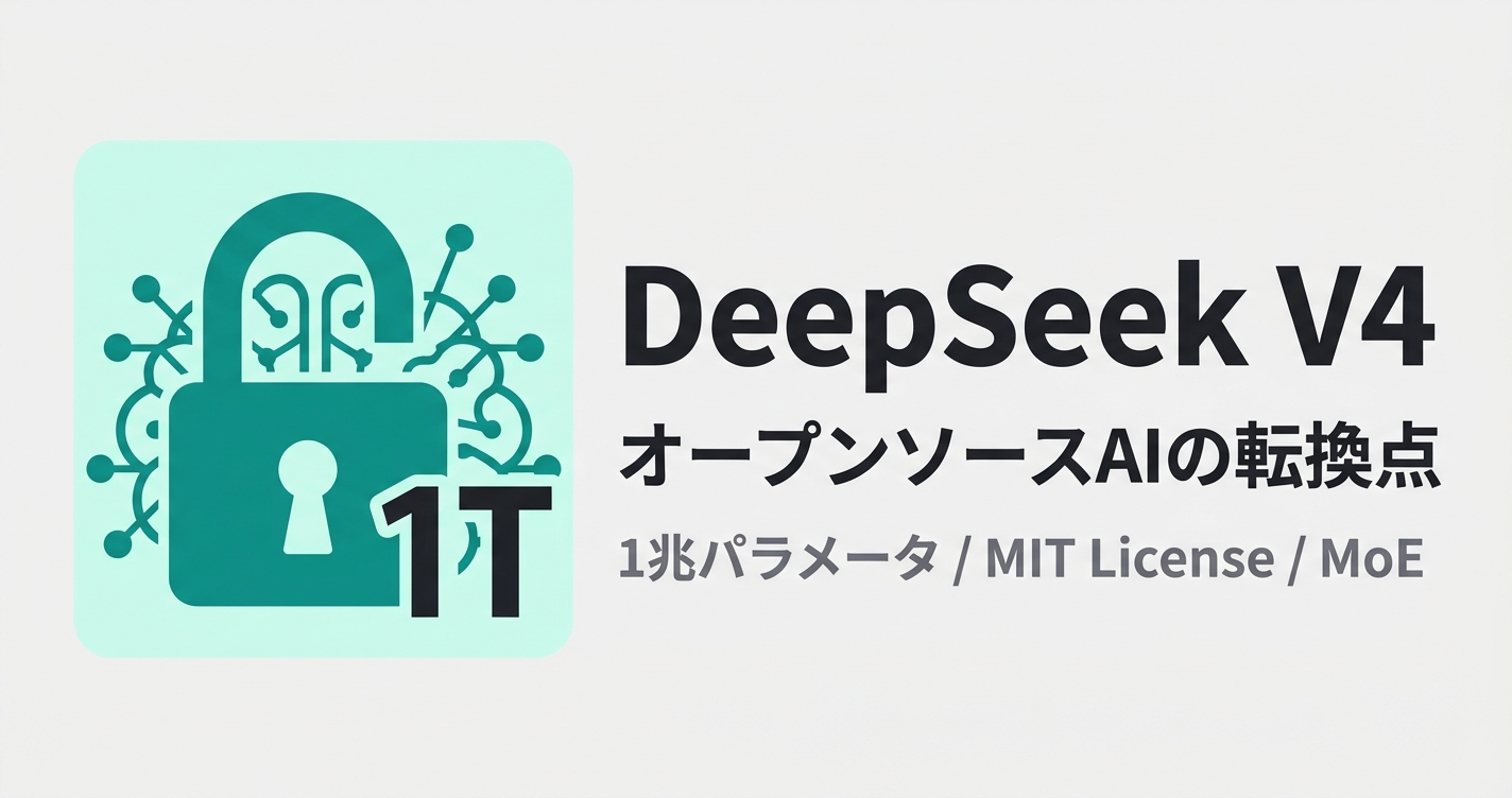 DeepSeek V4は1兆パラメータ・MIT Licenseのオープンソースモデル。MoEアーキテクチャ、マルチモーダル対応、100万トークンのコンテキストウィンドウを備え、GPT-5.4やClaude 4.6と真正面から競合する。その技術的特徴と業界への波及効果を読み解く。