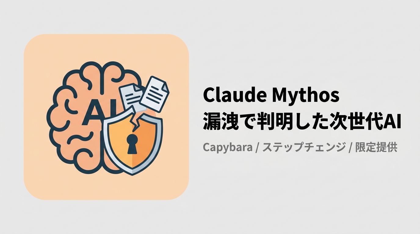 AnthropicのCMS設定ミスでOpus上位の新モデル「Mythos/Capybara」の詳細が流出。コーディング・学術推論・サイバーセキュリティで現行最強モデルを大幅に超える性能が明らかに。AIの安全性企業が基本的なセキュリティで失態を犯した事件を詳報する。