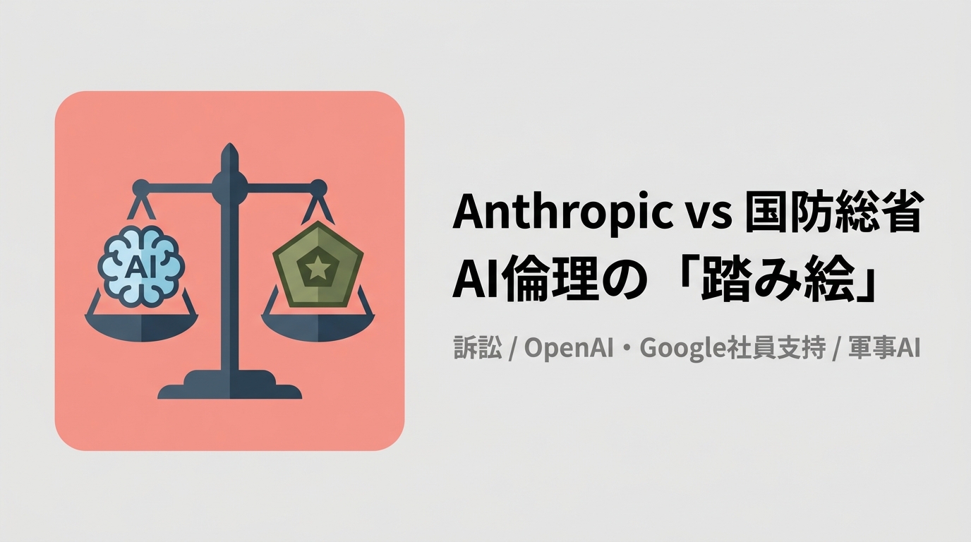 Anthropicが米国防総省を提訴。軍事AI用途を拒否したとして「サプライチェーンリスク」に指定・政府調達から排除されたことへの異議申し立てで、OpenAIやGoogle DeepMindの研究者30名以上が支持に回る異例の展開となった。