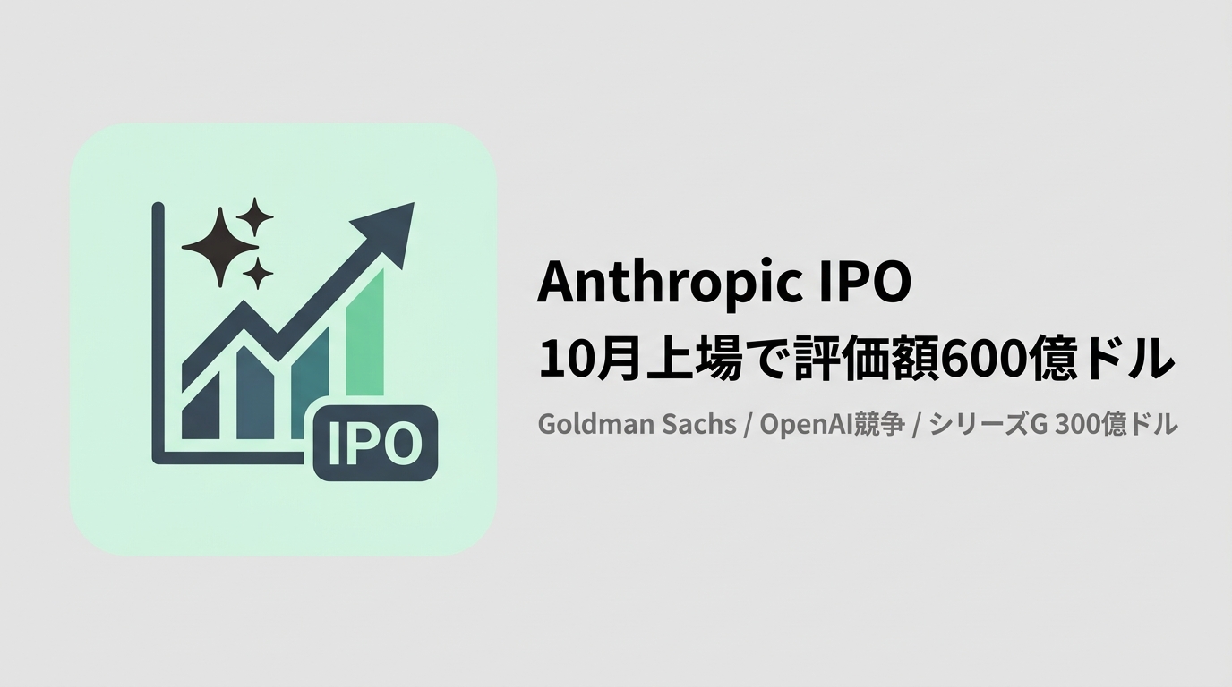 Anthropicが早ければ2026年10月にもIPOを検討、評価額は600億ドル超の可能性。Goldman Sachs・JPMorgan・Morgan Stanleyが主幹事候補に浮上。シリーズGで300億ドルを調達したばかりの同社が上場を急ぐ戦略的背景を解説する。