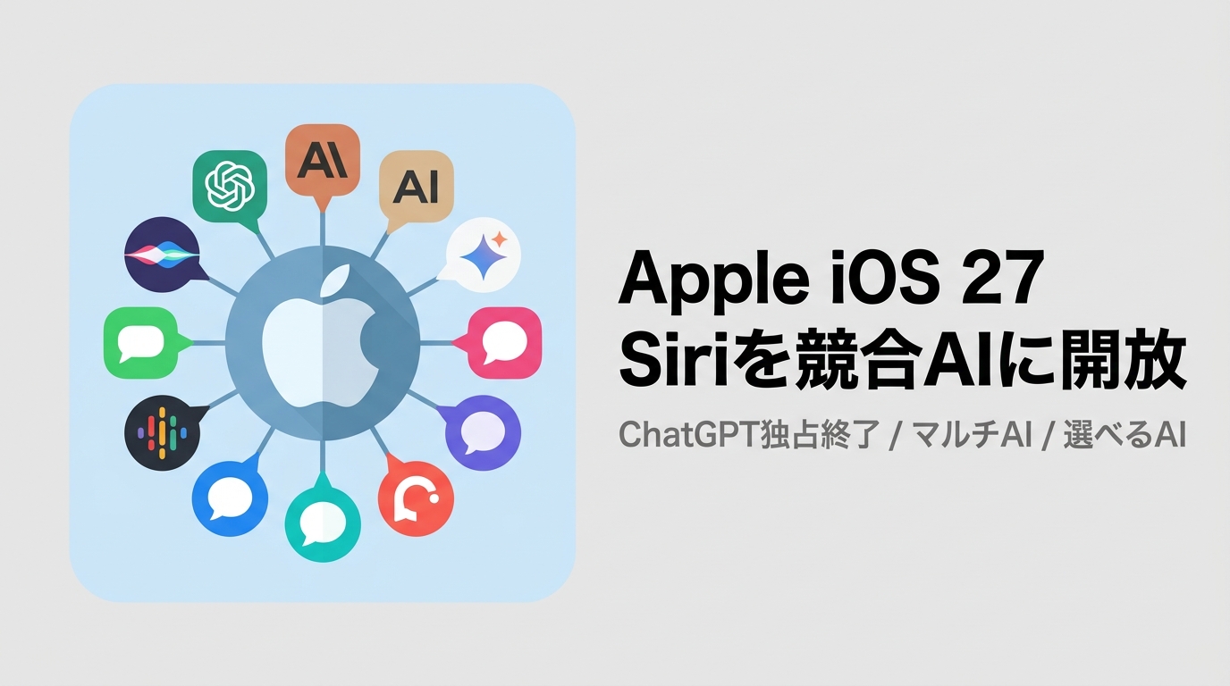 AppleがiOS 27でSiriのAIバックエンドをChatGPT独占から複数プロバイダー対応に変更へ。Claude・Geminiなどユーザーが選べる「マルチAI」戦略に転換する背景と、プラットフォームとしてのAppleの狙いを解説する。