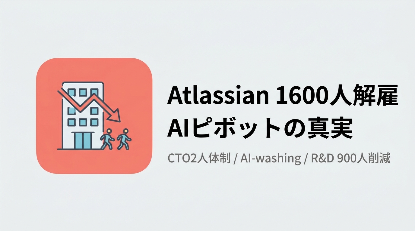 Atlassianが全従業員の10%にあたる1,600人を解雇し、CTO職をAI特化の2名体制に再編。「AI転換」を掲げた大規模リストラの実態と、業界に広がるAI洗浄問題を読み解く。