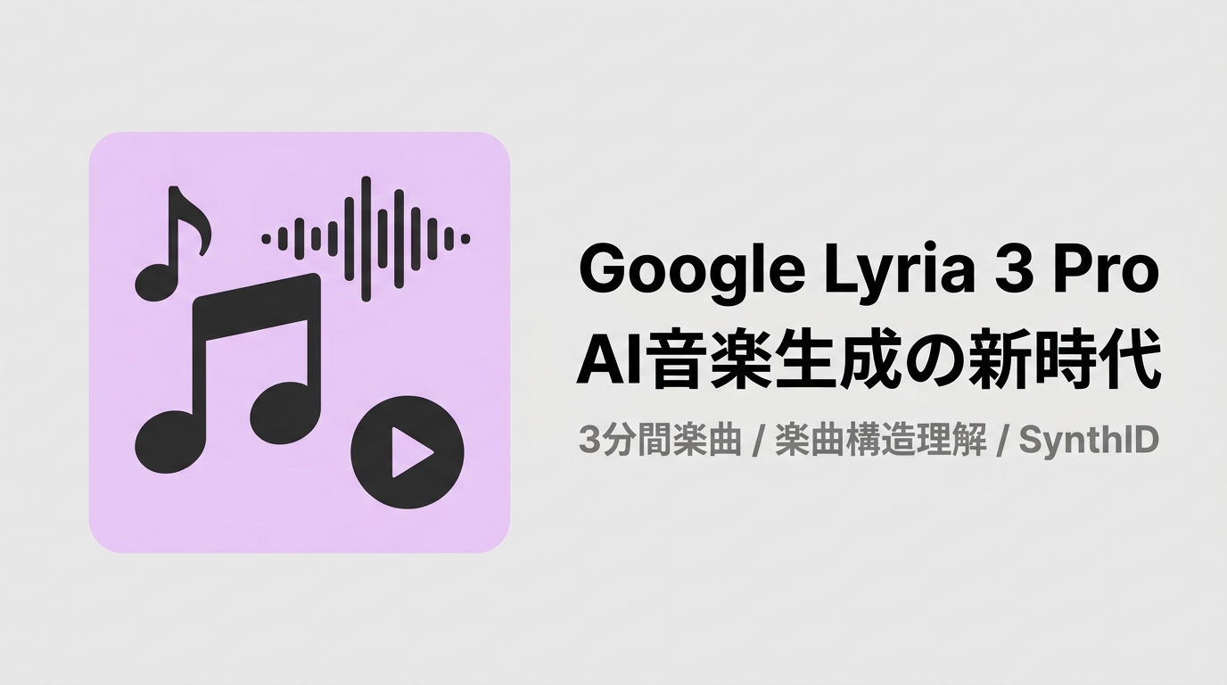 Google DeepMindの音楽生成AI「Lyria 3 Pro」が最大3分の楽曲をイントロ〜アウトロの構造ごと生成できるようになった。30秒の断片生成から「楽曲」へ——Geminiアプリ・Vertex AI・Google Vidsで提供される音楽AIの転換点を解説。