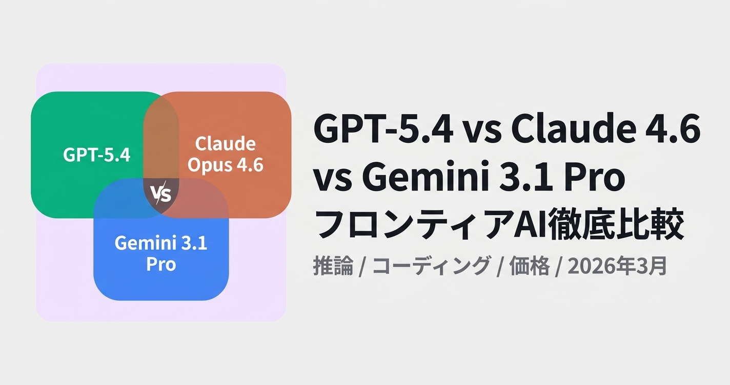 GPT-5.4、Claude Opus 4.6、Gemini 3.1 Proの3大フロンティアモデルを、推論・コーディング・知識労働・マルチモーダル・価格の5軸で比較。用途別の最適解を導き出す。