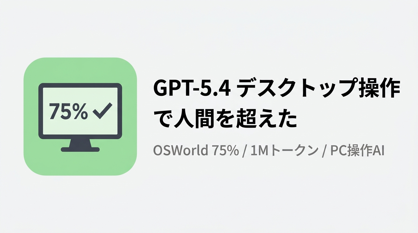 GPT-5.4がOSWorldベンチマークで75.0%を記録し、人間エキスパートの72.4%を初めて超えた。1Mトークンのコンテキストウィンドウとネイティブのデスクトップ操作機能を搭載したGPT-5.4が変えるAIエージェントの「手足」の現在地を解説する。