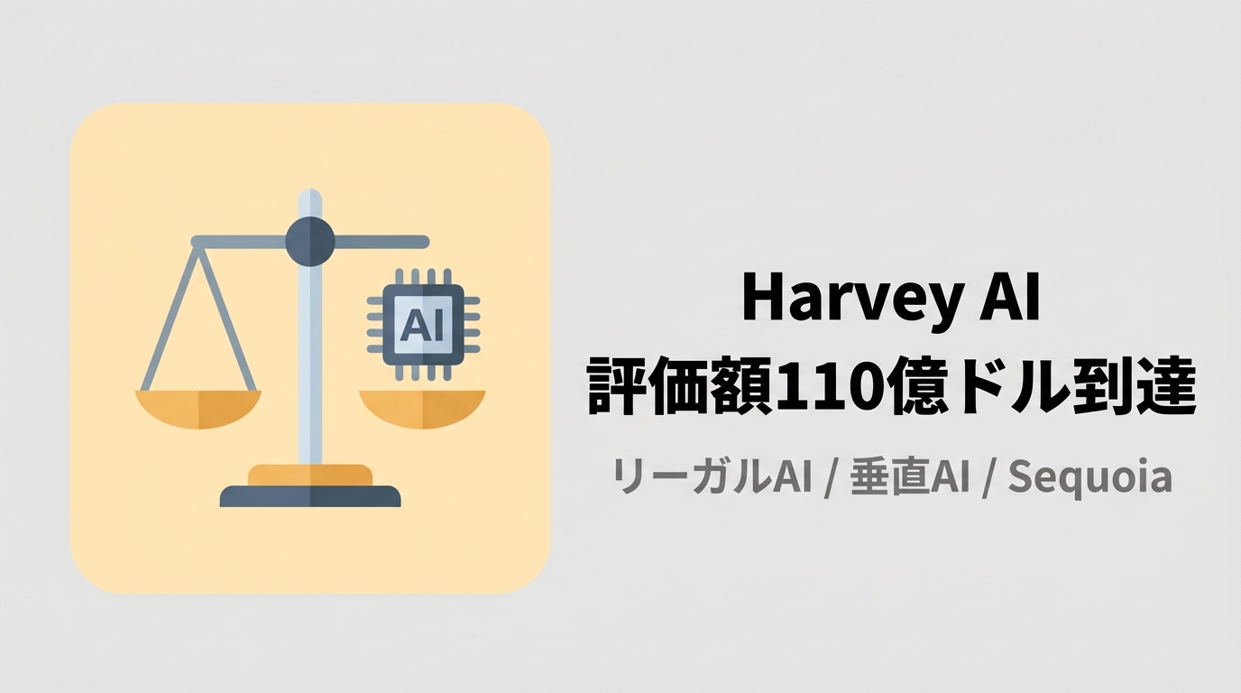 法律AI「Harvey」が評価額110億ドルに到達。GICとSequoia主導で2億ドル調達、弁護士10万人超が利用する。基盤モデルのコモディティ化が進む中、垂直特化AIに投資家の資金が集中する構造変化を解説する。