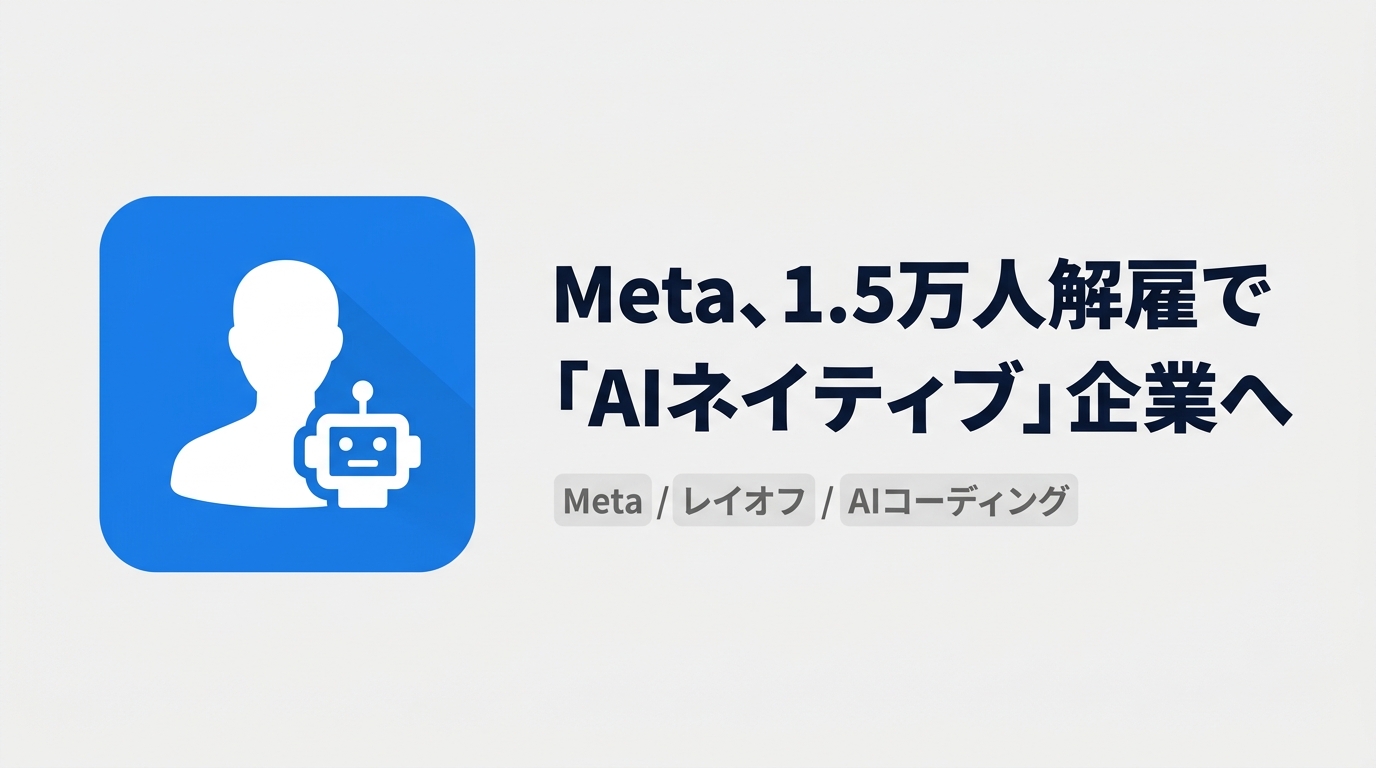 Metaが全従業員の約20%にあたる1.5万人の解雇を進める一方、エンジニアにはコードの75%以上をAIで生成する目標を設定。人事評価にもAI活用を組み込み、業界で最も急進的な「AIネイティブ化」が進行中だ。