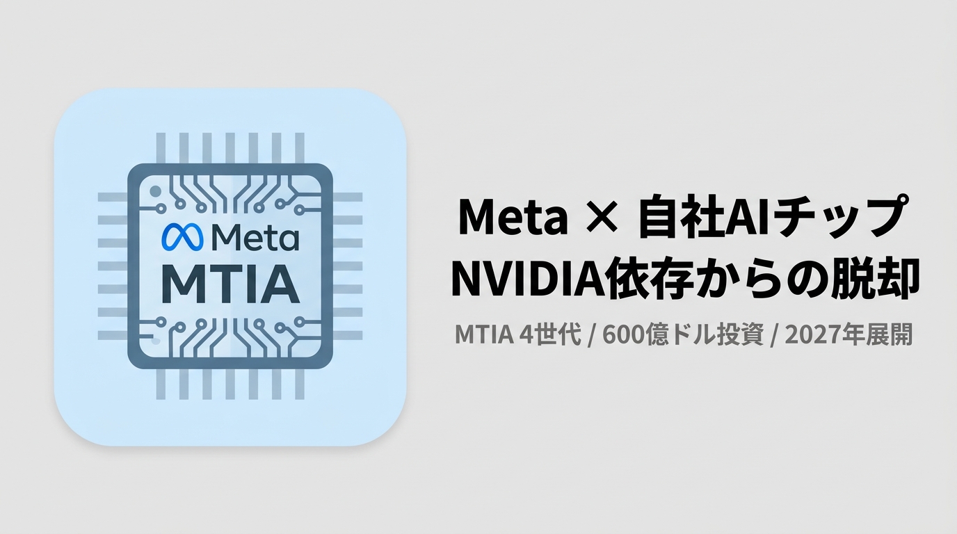 MetaがNVIDIA依存脱却へ自社AIチップ「MTIA」の4世代を2年で投入するロードマップを発表。600億ドルのAIインフラ投資を背景に、コスト削減とHBM供給リスク回避を狙うMetaのチップ戦略を解説する。