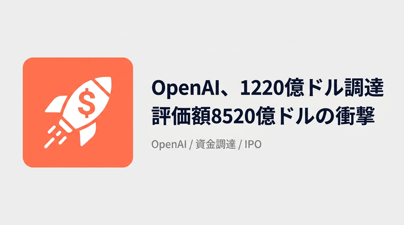 OpenAIが評価額8520億ドル、調達額1220億ドルという史上最大の資金調達を完了した。Amazon・Nvidia・SoftBankが主要投資家として名を連ね、IPOへの布石が着々と打たれている。