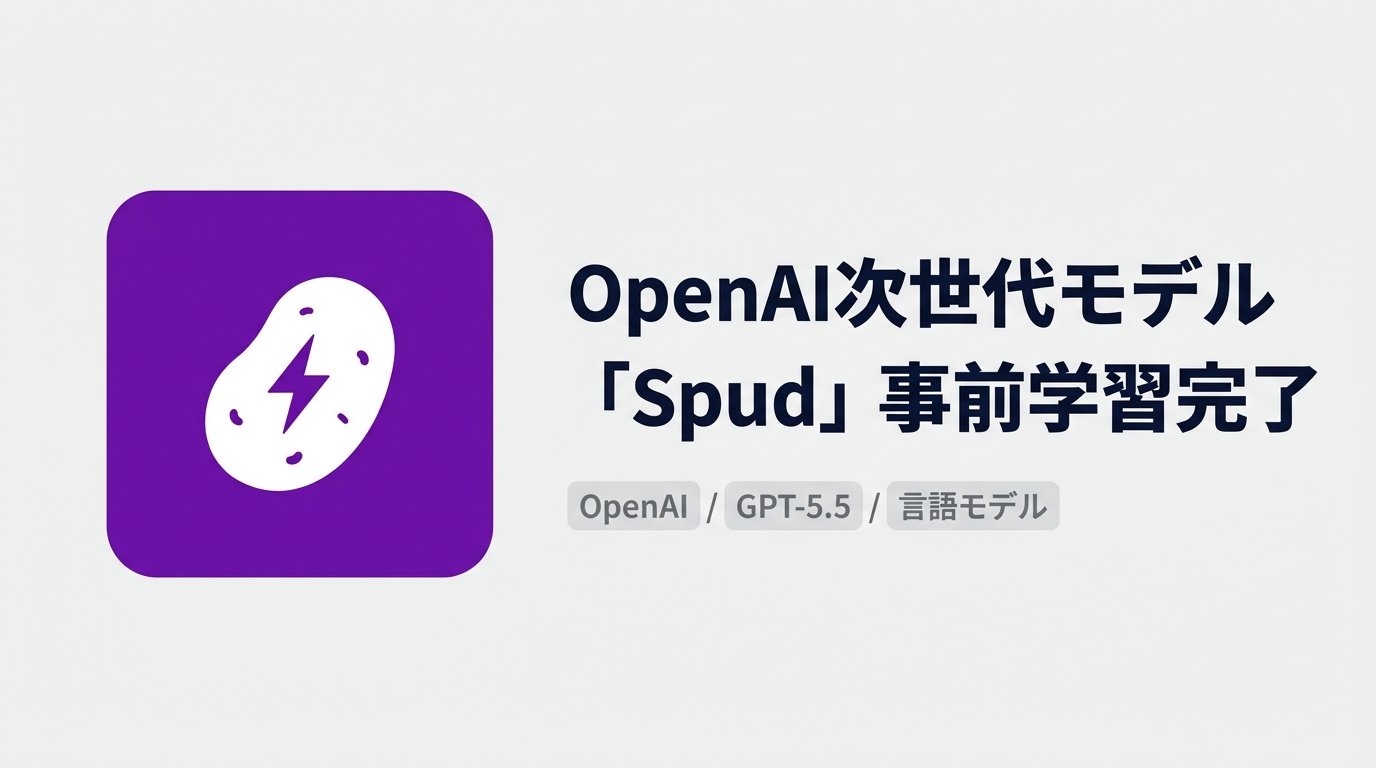 OpenAIの次世代フロンティアモデル「Spud」が事前学習を完了した。Sam AltmanはSpudが「経済を本当に加速させる」と社内で語り、計算資源を集中させるためSoraを廃止した。