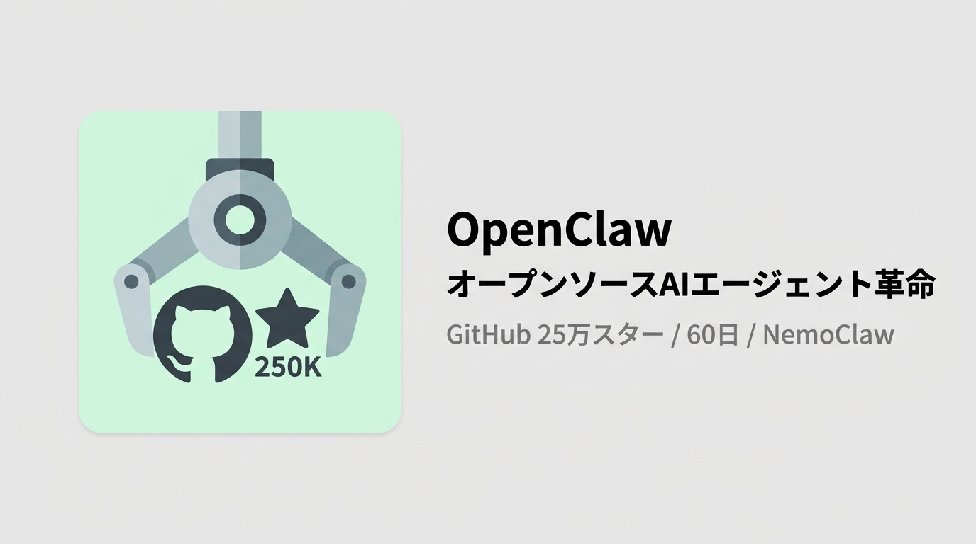 公開60日でGitHubスター25万超、Jensen Huangが「次のChatGPT」と呼んだオープンソースAIエージェント「OpenClaw」。ローカルで動く汎用エージェントがここまで爆発的に普及した理由を技術・エコシステムの両面から分析する。